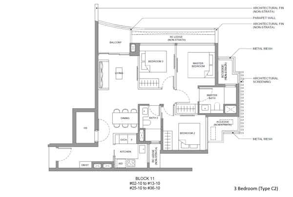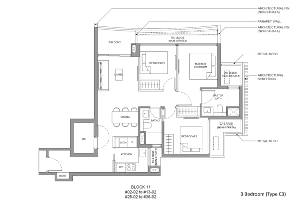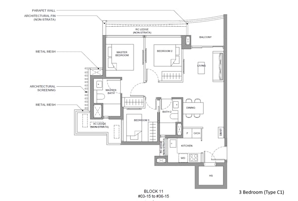 3 bedroom - 786 to 883 sqft (104 units)