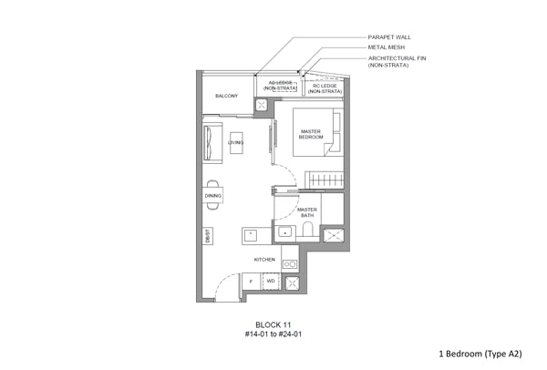 1 bedroom - 420 sqft (70 units)